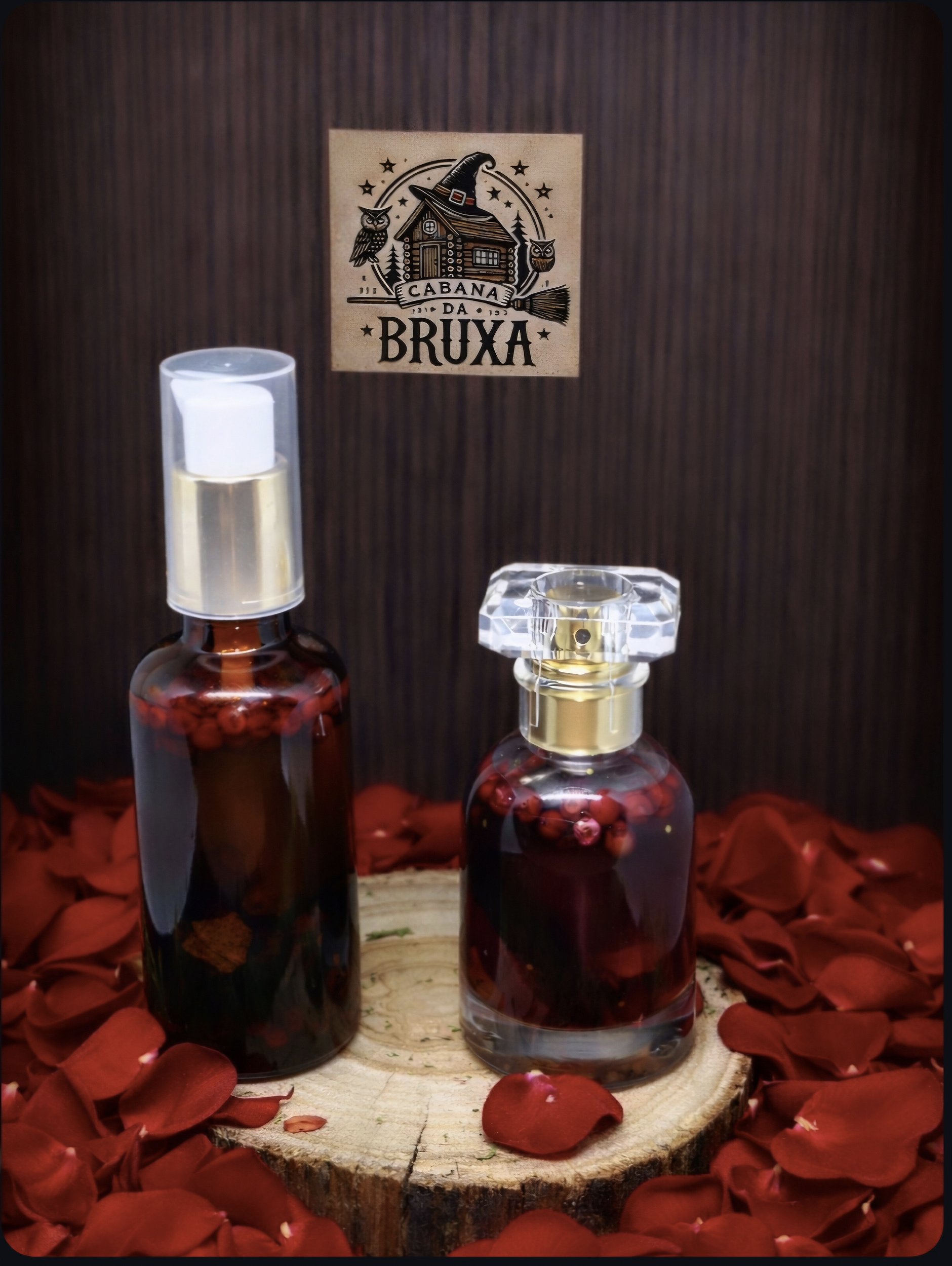 A combinação dos produtos potencializa o campo magnético do corpo e da aura, criando uma energia de atração contínua, quente e envolvente.